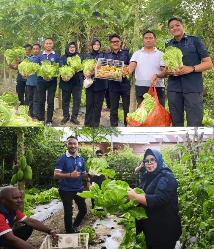 Wahai,CahayaMediaTimur.com-Lembaga Pemasyarakatan (Lapas) Kelas III Wahai panen sayur hasil budidaya Warga Binaan di lahan Perumahan Dinas Lapas Wahai, Sabtu (27/12). Kegiatan ini menjadi bagian dari pembinaan kemandirian sekaligus wujud dukungan terhadap program ketahanan pangan.