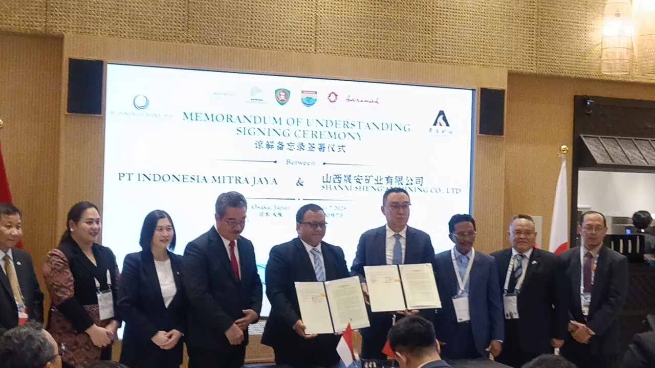 OSAKA,CahayaMediaTimur.com-Gubernur Maluku, Hendrik Lewerissa, menyaksikan penandatanganan Nota Kesepahaman (MoU) antara PT Indonesia Mitra Jaya (IMJ) dan Shanxi Sheng’an Co., Ltd. dari Tiongkok untuk penyusunan studi pendahuluan (Pre-Feasibility Study/Pre-FS) pembangunan Maluku Integrated Port (MIP) di Osaka, Selasa (7/10/2025).
