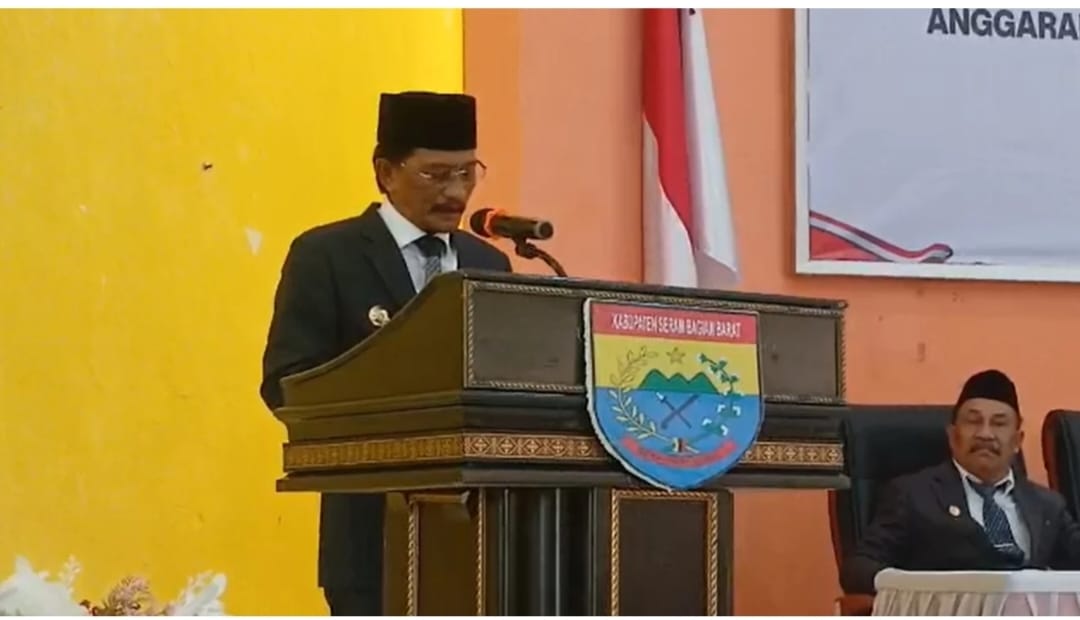 Piru,CahayaMediaTimur.com-Bupati Seram Bagian Barat (SBB) Asri Arman menyampaikan sambutan dalam Rapat Paripurna ke-2 DPRD SBB dengan agenda penyampaian pendapat akhir fraksi terhadap Rancangan Peraturan Daerah (Ranperda) tentang Perubahan Anggaran Pendapatan dan Belanja Daerah (APBD) tahun 2025, Senin (29/9/2025) di ruang sidang DPRD SBB.