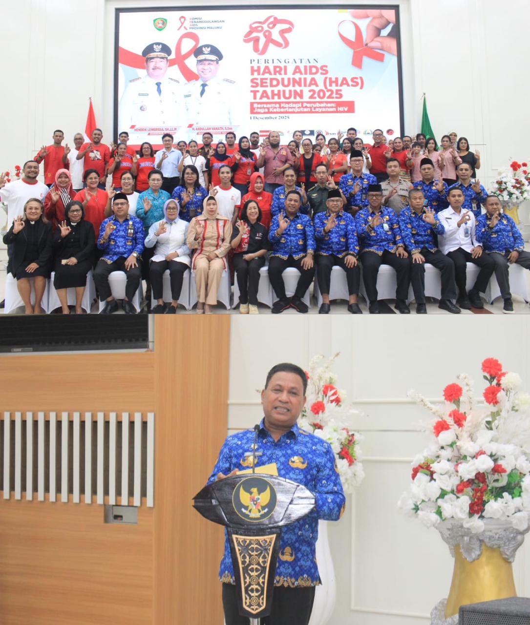 Ambon,CahayaMediaTimur.com-Wakil Gubernur Maluku, Abdullah Vanath, secara resmi membuka Peringatan Hari AIDS Sedunia Tahun 2025 di Lantai 7 Kantor Gubernur Maluku, Senin (1/12/2025). Mengusung tema “Bersama Hadapi Perubahan: Jaga Keberlanjutan Layanan HIV,” Wagub Vanath menyoroti perlunya upaya kolektif yang lebih serius untuk menanggulangi penyebaran HIV/AIDS di wilayah Maluku dan Indonesia.