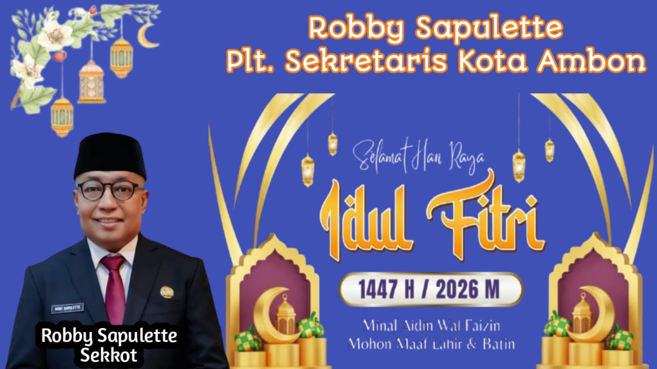 Ambon,CahayaMediaTimur.com-Sekertaris Kota Ambon,Roby Sapulette bersama Staf, mengucapkan selamat Hari Raya Idul Fitri 1447 Hijiriah 2026