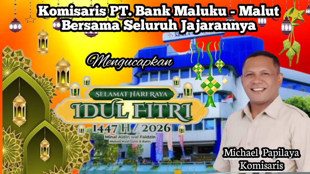 Ambon,CahayaMediaTimur.com-Komisaris PT. Bank Maluku dan Maluku Utara Michael Papilayah, Mengucapkan Selamat Hari Raya Idul Fitri 1447 Hijriah