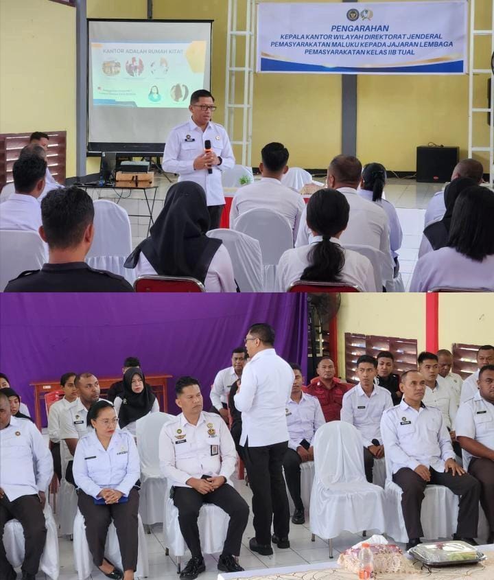 Sementara itu, Kepala Lapas Kelas IIB Tual, Nurchalis, menyampaikan terimakasih atas perhatian dan pembinaan langsung melalui penguatan tugas dan fungsi pemasyarakatan dari Kakanwil Ditjenpas Maluku. “Kegiatan ini menjadi motivasi bagi kami untuk terus meningkatkan kinerja serta mewujudkan Pemasyarakatan yang Pasti Bermanfaat untuk Masyarakat,” pungkas Kalapas.