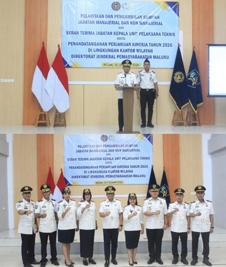 Sementara itu, Kepala Bagian Tata Usaha dan Umum Kanwil Ditjenpas Maluku, Sarwono, menyampaikan bahwa pelantikan ini diharapkan semakin memperkuat struktur organisasi dan mendukung pelaksanaan tugas pemasyarakatan di seluruh wilayah Maluku.