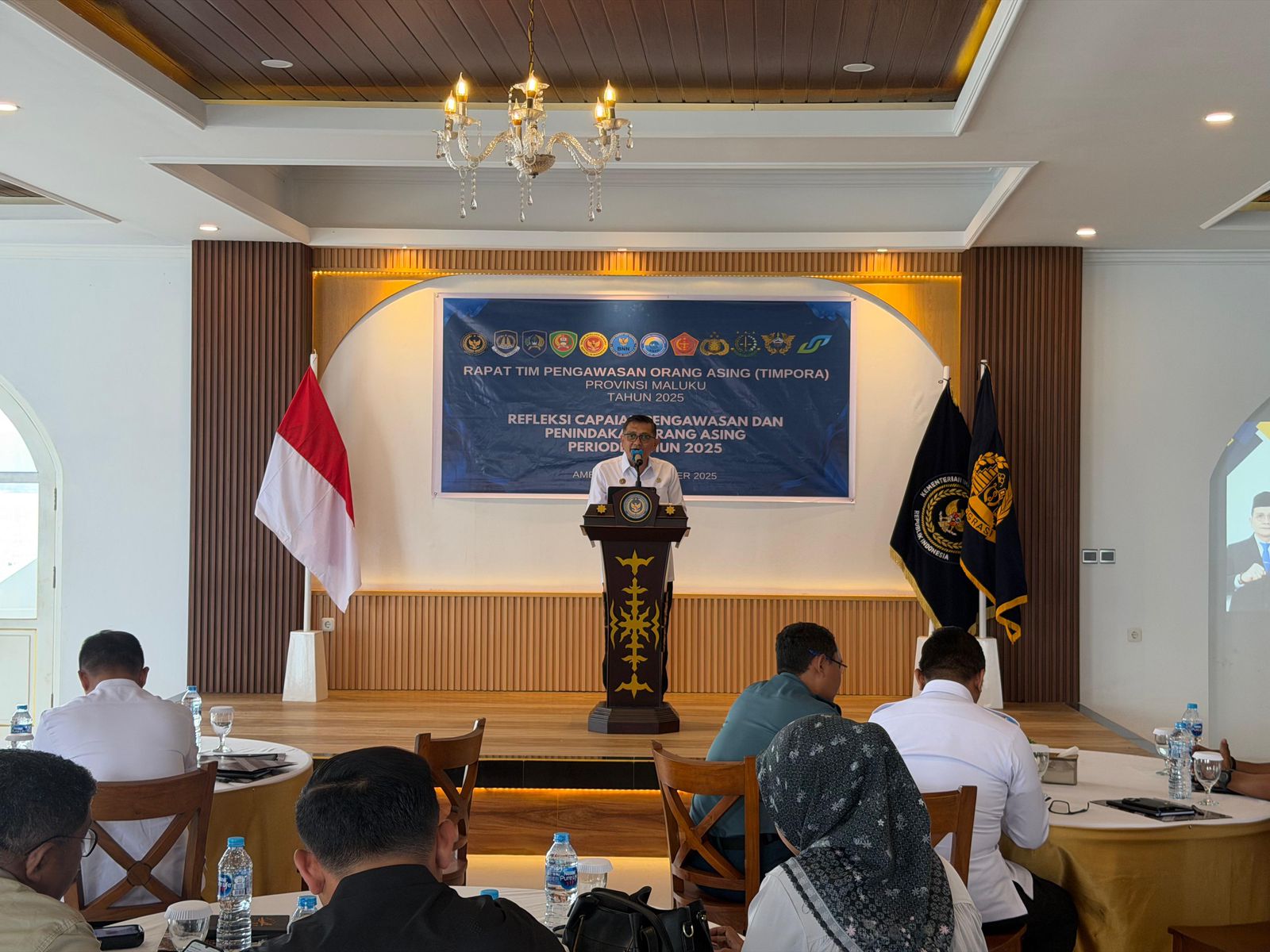 Ambon,CahayaMediaTimur.com-Kantor Wilayah Direktorat Jenderal Pemasyarakatan (Kanwil Ditjenpas) Maluku menghadiri Rapat Tim Pengawasan Orang Asing (TIM PORA) Provinsi Maluku Tahun 2025 yang digelar untuk melakukan evaluasi dan refleksi capaian pengawasan serta penindakan orang asing di wilayah Maluku selama tahun 2025. Selasa (9/12)