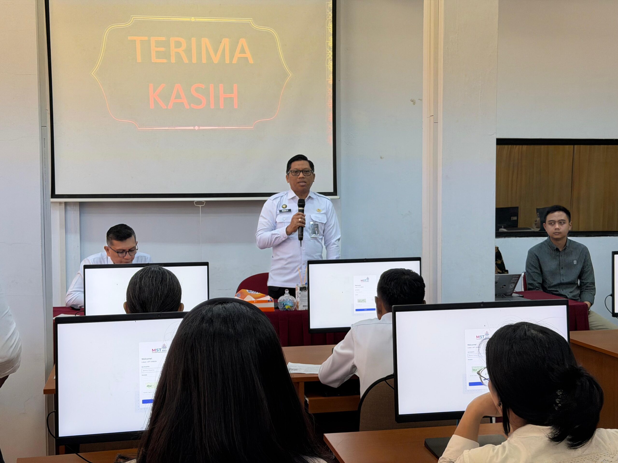 Dalam kesempatan yang sama, Sarwono, Kepala Bagian Tata Usaha dan Umum Kanwil Ditjenpas Maluku, turut memberikan penguatan kepada seluruh peserta ujian. Ia menyampaikan bahwa persiapan administrasi, pendataan peserta, serta kelancaran teknis pelaksanaan ujian merupakan hal krusial yang harus dilakukan secara profesional dan tertib.