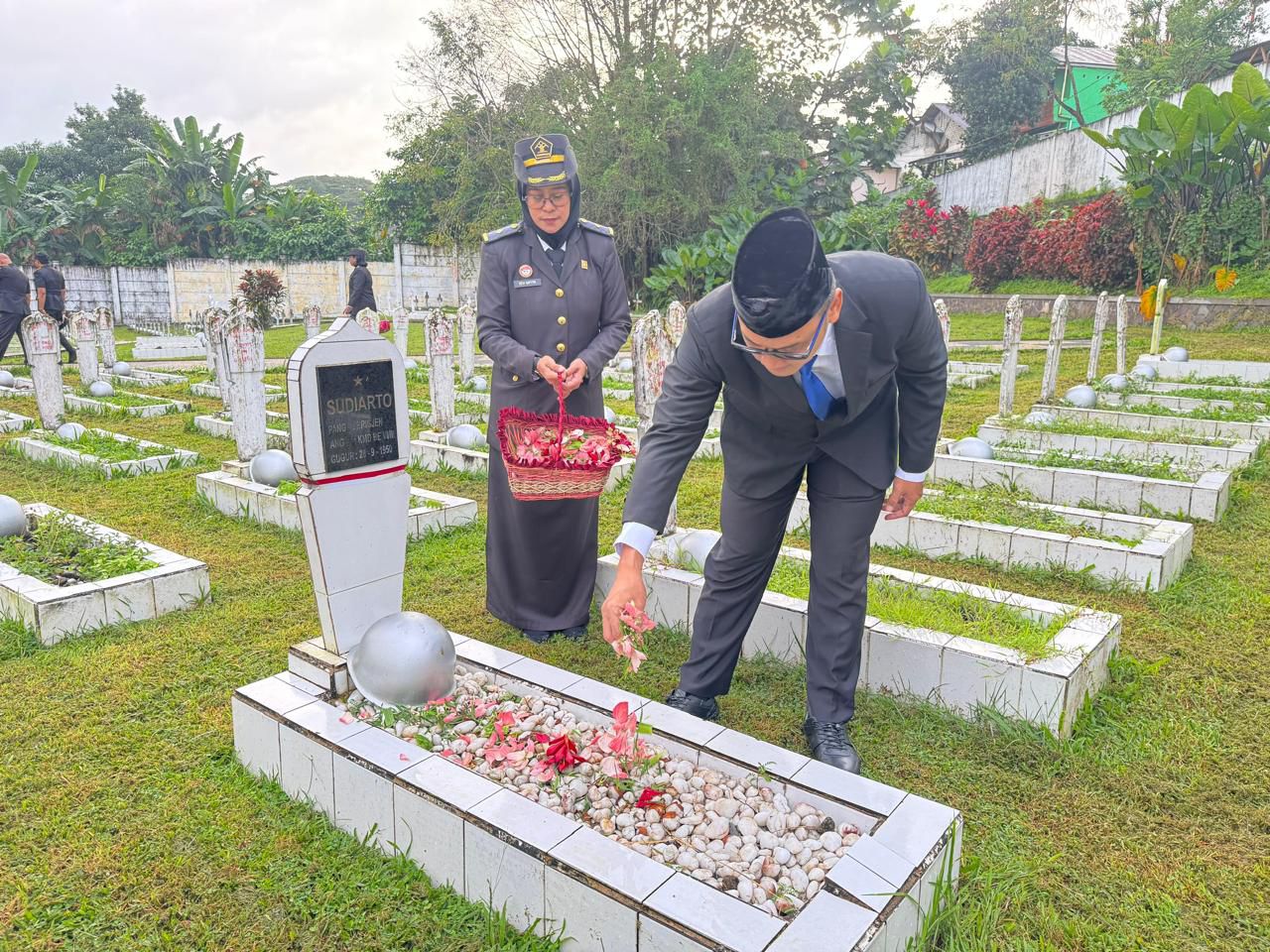 “Pada kesempatan ini kita melaksanakan Upacara Tabur Bunga dan Ziarah di Taman Makam Pahlawan Kapaha Ambon bersama Jajaran Kanwil Kemenkum Maluku untuk mengenang jasa para pahlawan yang telah gugur memperjuangkan dan demi melindungi Negara Kesatuan Republik Indonesia kita ini di masa lampau, Meski perjuangan kita tidak dengan berperang menggunakan bambu runcing, tetapi kita masih bisa memberikan pengabdian kita kepada negara dengan melaksanakan tugas dan fungsi kita semaksimal mungkin Demi menciptakan jiwa bela negara dan kegiatan ini menjadi momentum untuk memperkuat sinergitas lintas institusi dalam memberikan pelayanan prima kepada masyarakat pada umumnya,”pungkas Sarwono