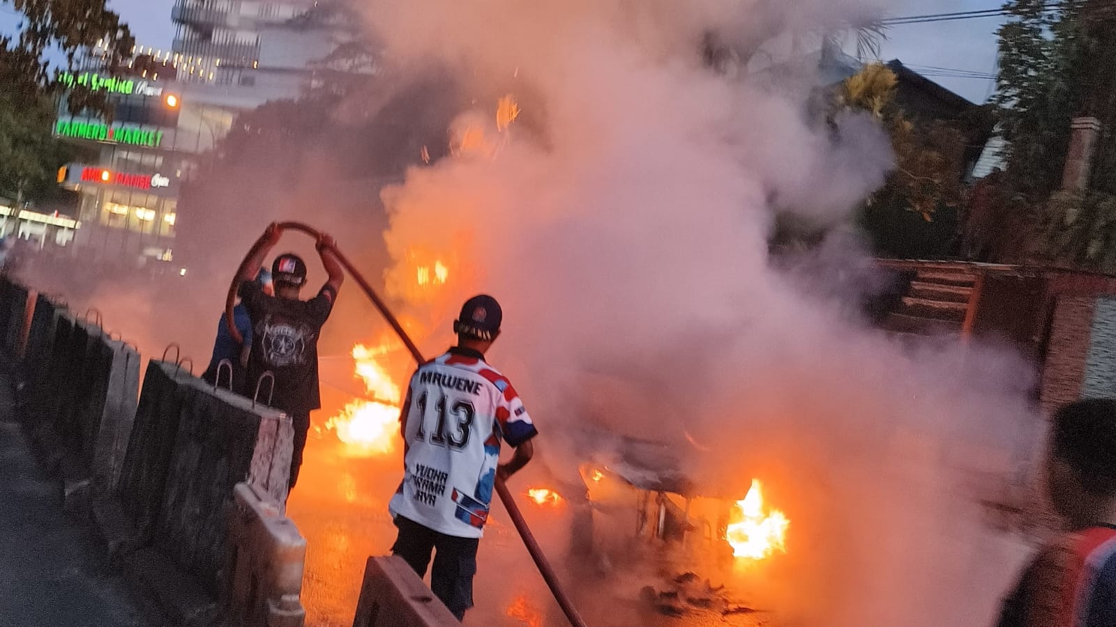 “Proses pemadaman berlangsung intensif di tengah arus kendaraan yang masih melintas.