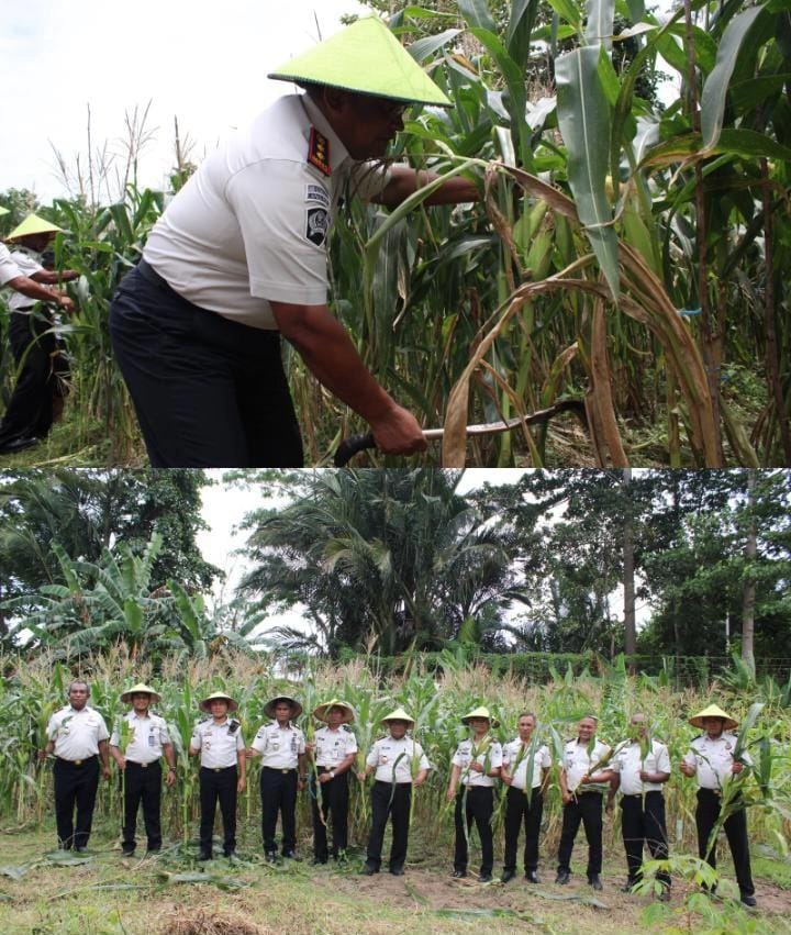 Piru,CahayaMediaTimur.com-Pemasyarakatan (Lapas) Kelas IIB Piru turut berpartisipasi dalam kegiatan Panen Raya Serentak Pemasyarakatan yang diselenggarakan oleh Kementerian Imigrasi dan Pemasyarakatan (Kemenimipas) secara nasional dan terpusat di Lapas Kelas I Cirebon, Kamis (15/01), seusai mengikuti Panen Raya Serentak Nasional bersama Menteri Imigrasi dan Pemasyarakatan, Lapas Piru melaksanakan panen jagung dan kacang panjang pada kebun kemandirian Lapas Piru.