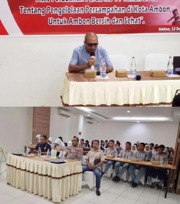 Ambon,CahayaMediaTimur.com-Pemerintah Kota Ambon menegaskan komitmennya mewujudkan kota yang bersih, sehat, dan berkelanjutan melalui penguatan supremasi hukum dan kesadaran lingkungan masyarakat. Penegasan ini disampaikan Kepala Dinas Lingkungan Hidup dan Persampahan (DLHP) Kota Ambon, Apriesz Gaspersz, saat membuka kegiatan Penyuluhan Hukum Penerapan Perda Kota Ambon Nomor 7 Tahun 2021 tentang Pengelolaan Sampah.