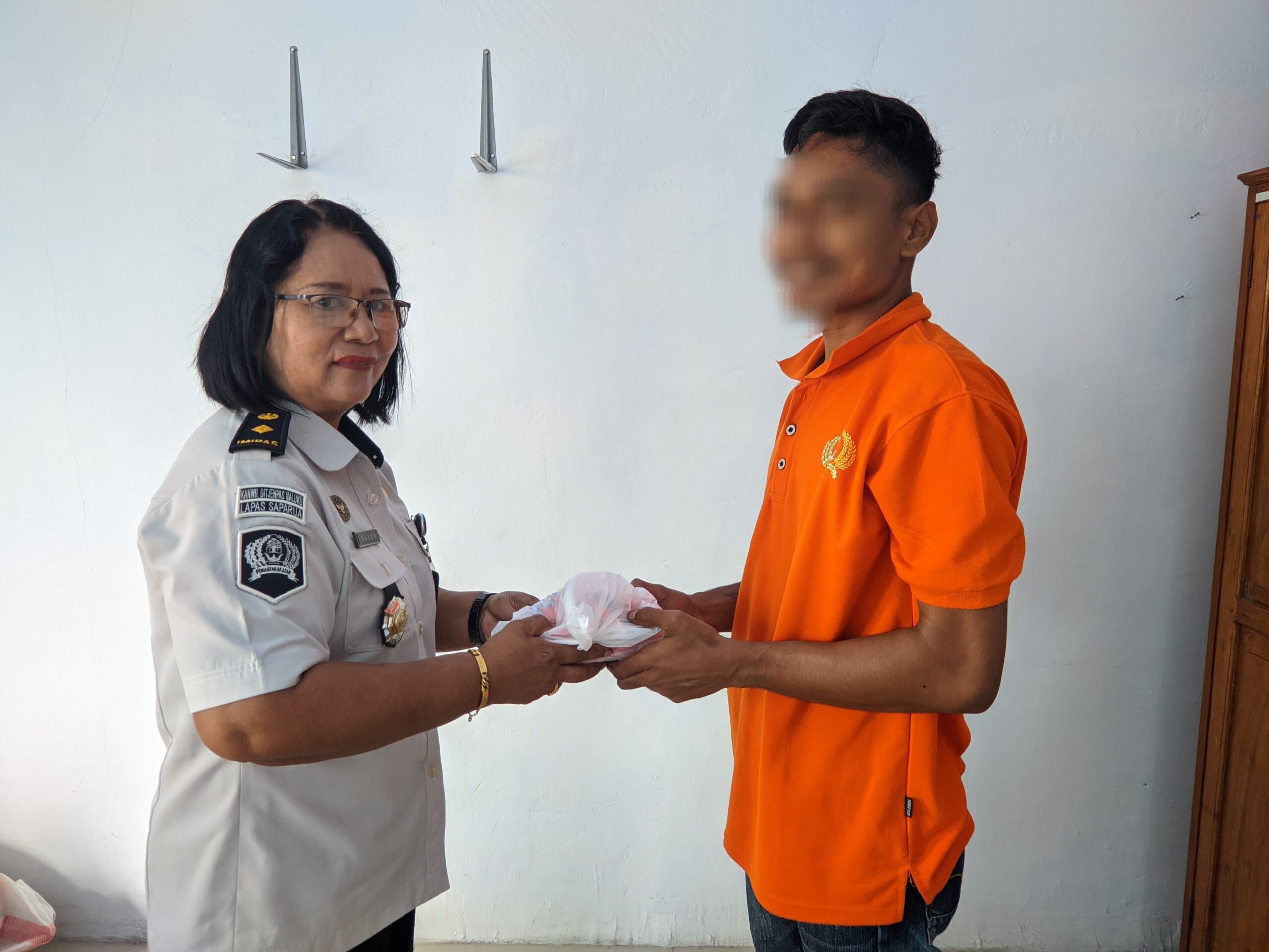 Penyerahan perlengkapan kebersihan dilakukan langsung oleh Kepala Subseksi Pembinaan, Ellen D. Anakotta, kepada warga binaan. Adapun perlengkapan yang disalurkan berupa detergen, pasta gigi, sikat gigi, dan sabun mandi yang dapat digunakan warga binaan untuk menjaga kebersihan diri maupun lingkungan hunian.