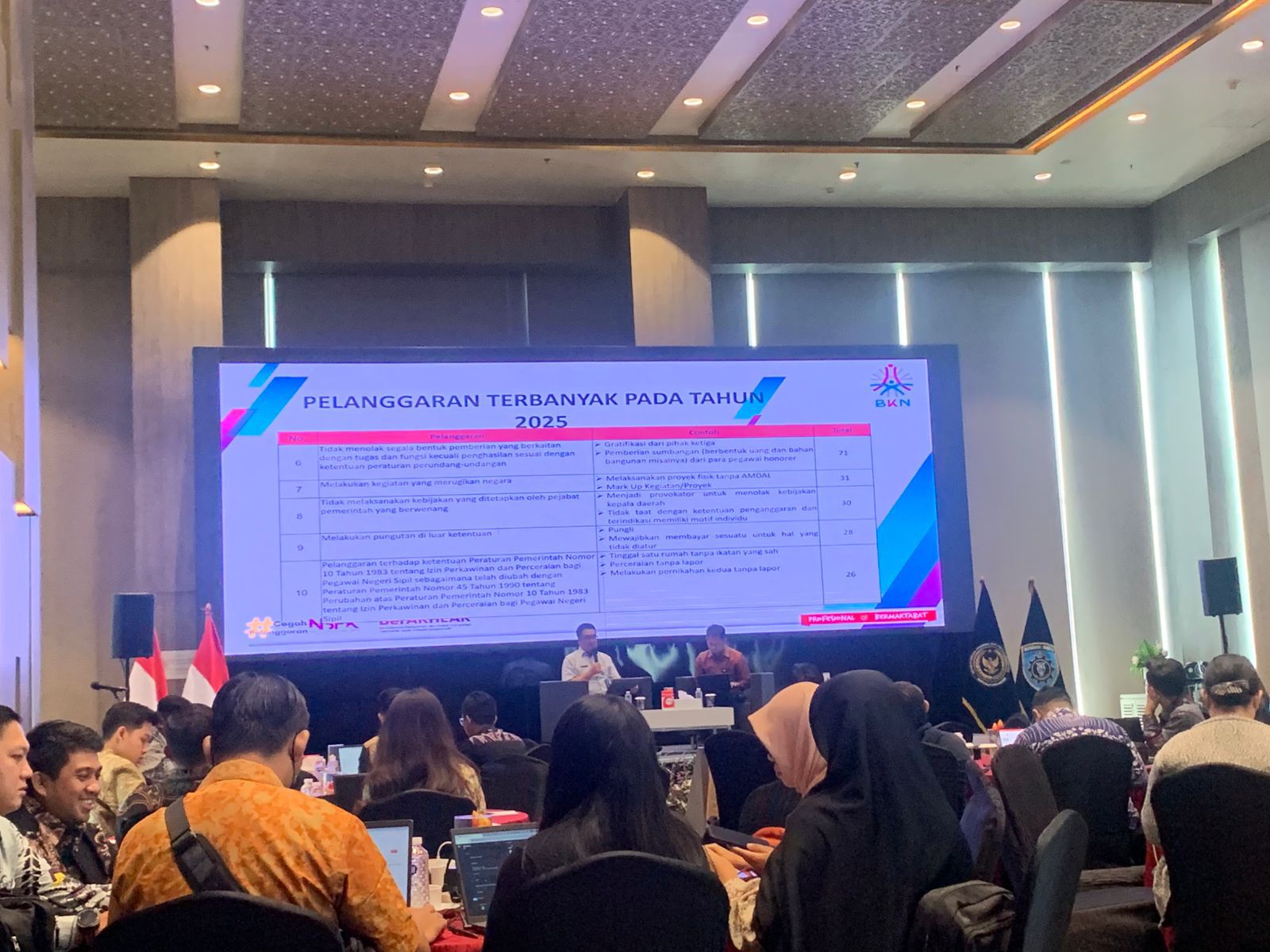 Rangkaian kegiatan diawali dengan pembukaan, dilanjutkan dengan pengenalan Aplikasi CARAKA khususnya pada fitur Hukuman Disiplin. Selain itu, peserta juga menerima pemaparan materi dari Badan Pertimbangan Aparatur Sipil Negara (BPASN) terkait kewenangan penerbitan Surat Keterangan Bebas Catatan Cela Pegawai. Materi tersebut kemudian diperkuat dengan praktik implementasi dan penginputan data hukuman disiplin melalui Aplikasi CARAKA.