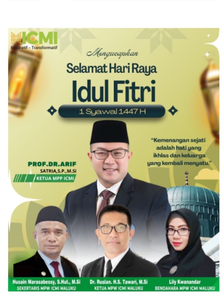 Ambon,CahayaMediaTimur.com-Ketua MPW ICMI Maluku, Dr.Ruslan H. S Tawiri, M. Si.,bersama Pengurus, mengucapkan Selamat Hari Raya Idul Fitri 1447 Hijiriah 2026