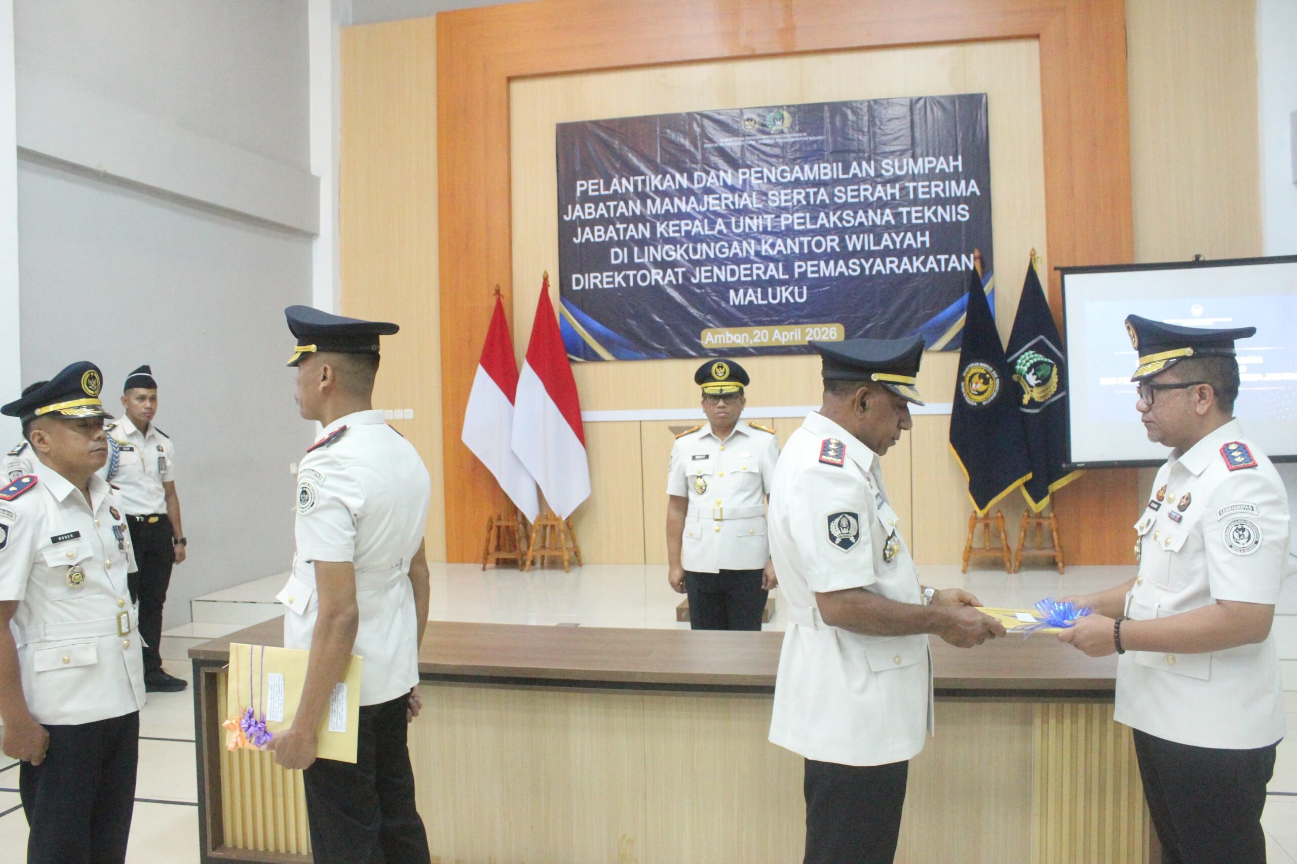 Ambon,CahayaMediaTimur.com-Tonggak estafet kepemimpinan di lingkungan Lembaga Pemasyarakatan (Lapas) Kelas III Geser resmi berganti. Hal ini ditandai dengan pelantikan pejabat di lingkungan Kantor Wilayah Direktorat Jenderal Pemasyarakatan (Kanwil Ditjenpas) Maluku yang bertempat di Aula Kanwil, sebagai penanda babak baru dalam peningkatan kinerja pemasyarakatan, senin (20/4/2026).