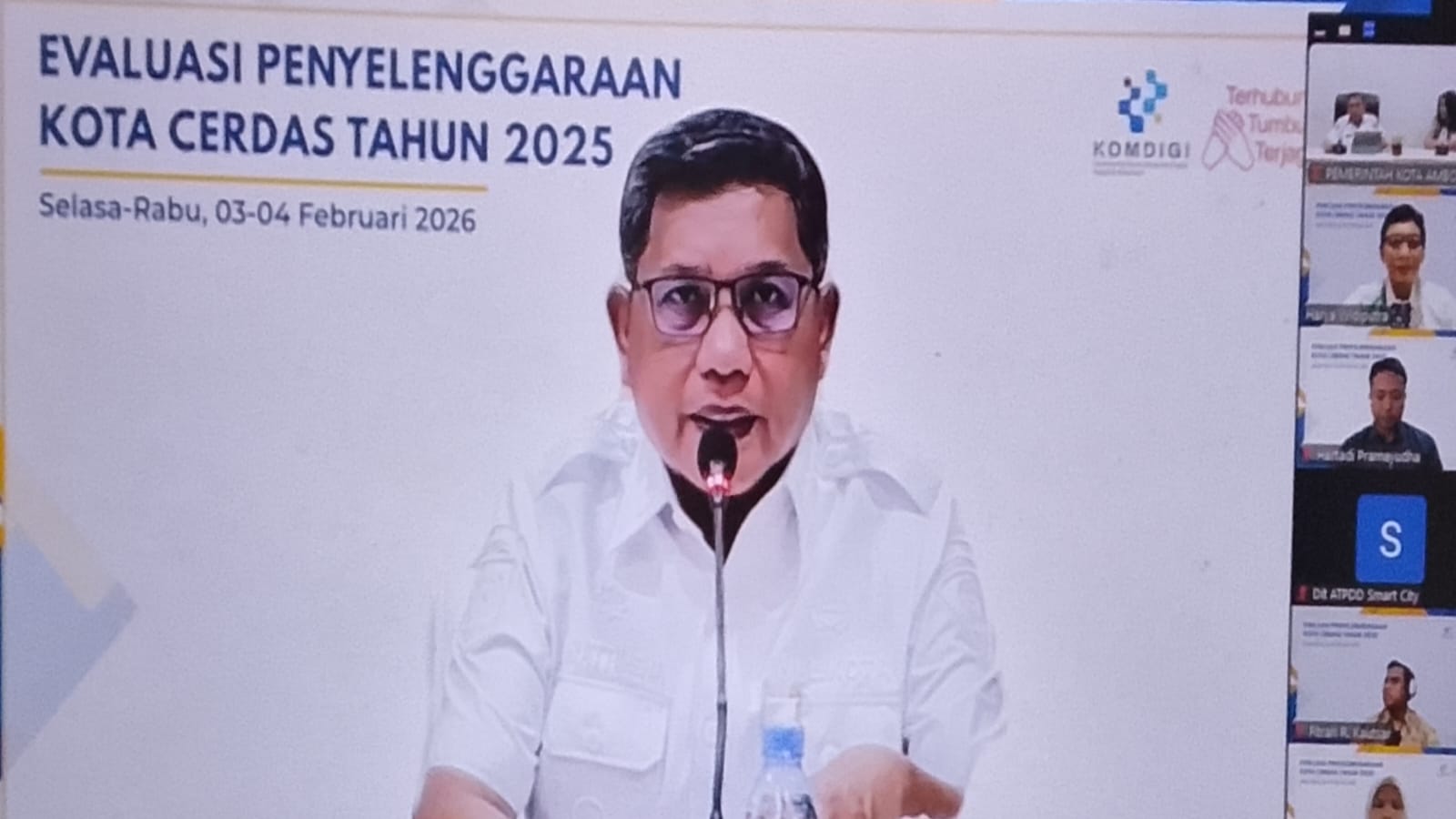 Penegasan itu disampaikan Wattimena saat Evaluasi Penyelenggaraan Kota Cerdas Tahun 2025 yang digelar Kementrian Komunikasi dan Digital RI, di Ruang Flesingen, Balai Kota Ambon, Rabu (4/2/2026).