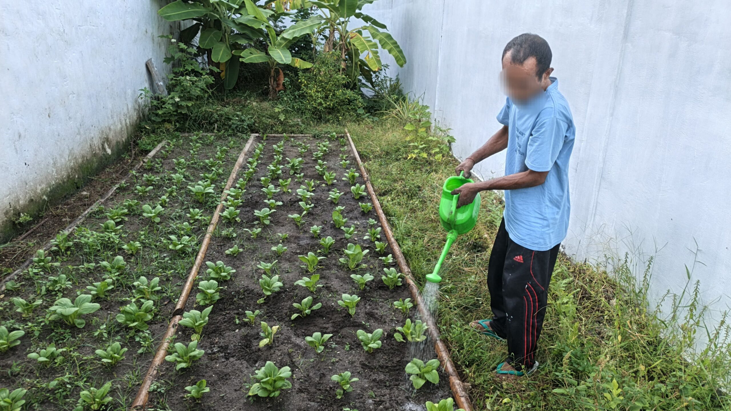 Sejak pagi hari, warga binaan tamping kebun terus aktif melakukan perawatan tanaman dengan penuh tanggung jawab. Kegiatan utama yang dilakukan berupa penyiraman tanaman pakcoy secara merata guna memastikan pertumbuhan yang optimal. Penyiraman dilakukan dengan memperhatikan kondisi tanah serta kebutuhan air tanaman agar kelembapan tetap terjaga dengan baik terlebih saat cuaca panas.